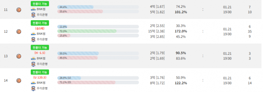 1월21일 썸 vs 우리은행 내맘대로 분석 참고하시고 건승하세
