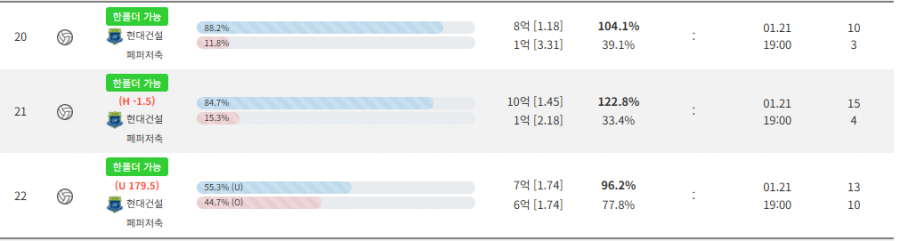 1월21일 현대건설 vs 페퍼 내맘대로 픽 참고하시고 건승하세요