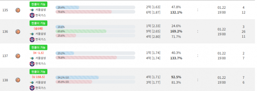 1월22일 삼성 vs 가스 분석 내맘대로픽