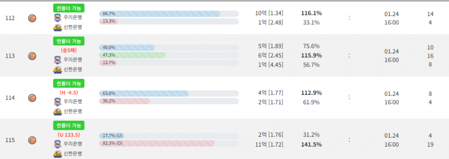 1월24일 우리 vs 신한 분석 내맘대로픽