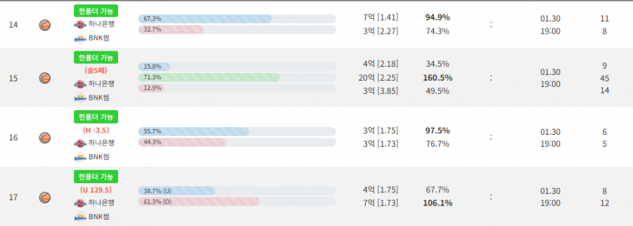 1월30일 하나 vs 썸 분석 내맘대로픽