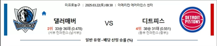 3월22일(토) NBA 댈러매버 vs 디트피스